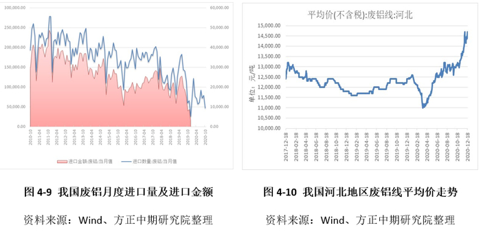 此新政策一出台,市场震动明显,对于废铝日后进口将放量似乎也成为了市场共识。但是近期据我们了解到的情况来看,新政策要求标准较高,现有货源能够达标的较少。因此短期内进口不会大幅放量,这也是为何废铝价格依然紧紧跟涨国内原铝。预计随着对于新政的逐渐适应,2021年废铝进口量将有望呈现增加的态势。再环保要求日益提高的情况下,未来对于再生金属的应用也将成为新的消费趋,废铝价格对于原铝的影响也将日渐加大。