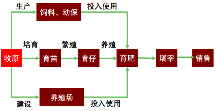 以牧原股份为代表的一体化自育自繁自养模式,企业自建养殖场,统一采购饲料、疫苗,雇佣农工集中进行种猪的育种和扩繁、猪苗的培育、生猪育肥等全部生产过程,并统一销售给终端消费者。从上游的育种和饲料,到中游的扩繁和育肥,再到下游的屠宰销售,牧原通过一体化的产业链,做到生产全环节可控。