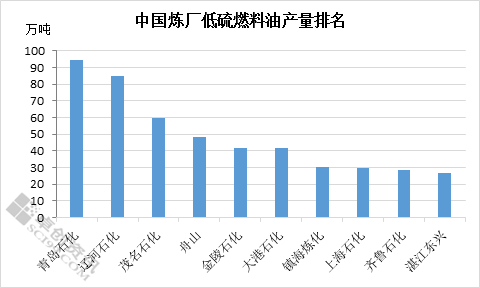 据卓创资讯统计,2020年中国炼厂低硫燃料油产量排名前五的分别是青岛石化(中石化)、辽河石化(中石油)、茂名石化(中石化)、舟山石化(中海油)、金陵石化(中石化)。