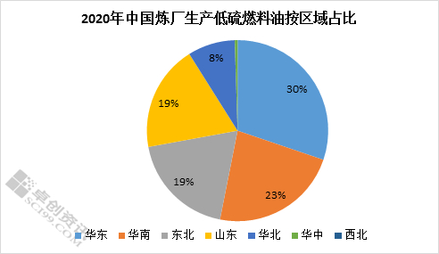 从区域占比情况来看,华东地区产量占比在30%左右。区内主要生产炼厂有舟山石化、镇海炼化、金陵石化、上海石化、高桥石化以及浙石化。舟山石化以中国(浙江)自由贸易试验区供燃料油业务为支撑,大力推进低硫船用燃料油生产,截至目前,公司已基本达成年产低硫船用燃料油100万吨的产能。华南地区占比近23%,区内主要生产炼厂有茂名石化、湛江东兴、海南炼化、广州石化和惠州石化。东北地区占比逾19%,区内主要生产炼厂辽河石化全年产量达85万吨,居中国石油首位。山东地区产量占比近19%。区内主要生产炼厂有青岛石化、齐鲁石化。其中青岛石化全年低硫燃料油产量94.4万吨,居全国首位。华北地区主要生产炼厂有大港石化和华北石化,占比8%左右。
