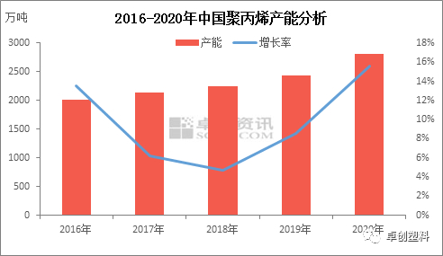 据卓创统计数据监测,2016-2020年国内聚丙烯产能逐年增长,产能复合增长率在8.69%。就国内近五年聚丙烯扩能之路来看,2016-2018年产能扩张有所放缓,2019年起增长势头转好,2020年国内聚丙烯产能较去年激增15.13%,使得今年成为继2016年之后的又一投产大年。全年国内新增产能达到380万吨,较去年增长88.12%。虽然聚丙烯纷杂多样的下游应用使得需求方面有着较大的弹性,但行业积极扩能所带来的供给压力,势必将使聚丙烯从业者面临一定挑战。