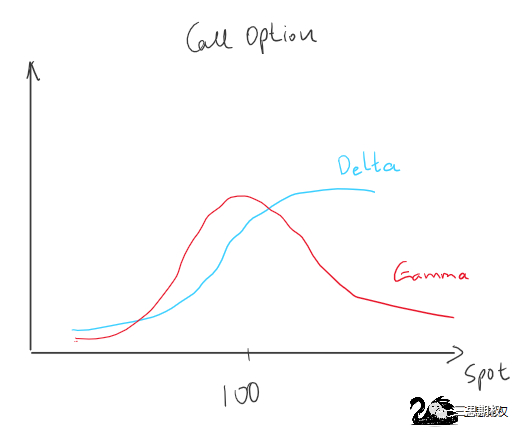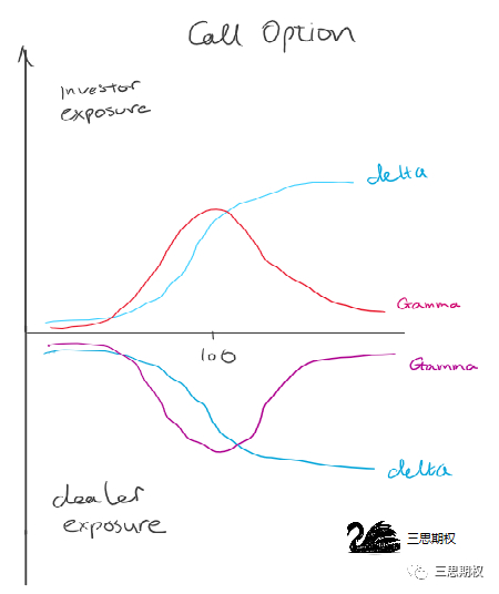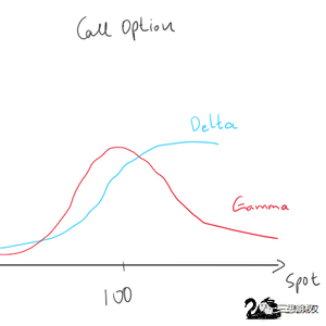买入看涨期权,拥有正Delta和正Gamma。卖空看涨期权,风险暴露就是负Delta,负Gamma。