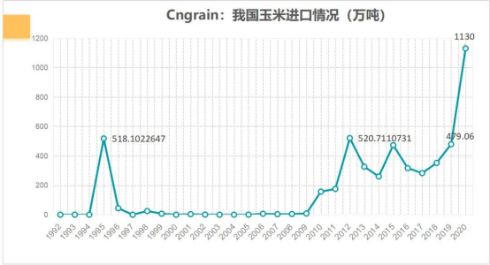 其次,看玉米,2020年进口量也是首创历史最高纪录。根据海关总署的数据,中国2020年进口了创纪录的1130万吨玉米,比上年提高135.7%,这也是首次超过全年关税税率配额720万吨。市场预计我国玉米进口量未来依然强劲,近期,我国连续买入近600万吨美国玉米,创下单周最高纪录。