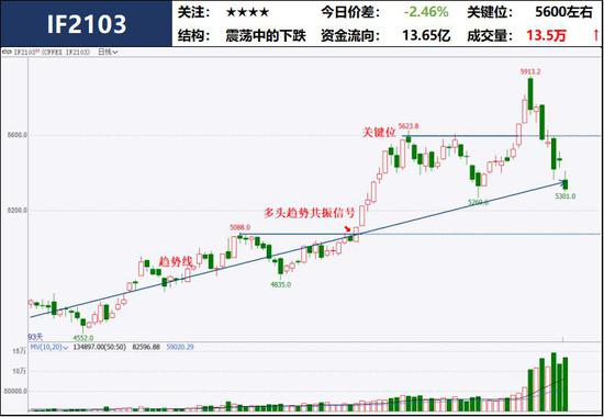 近期资金面处于紧平衡状态,抱团股遭到抛售,市场情绪较为低落,市场资金流出。盘中跌破关键位后大幅下跌,今日延续弱势触及下方趋势线,若盘中再次走弱可依托趋势线关注逢高做空机会。
