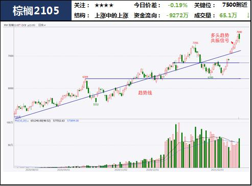 由于外盘走低,带动内盘下跌。然而,近期马来西亚棕榈油库存降低,价格持续攀升,叠加豆油走高,带动国内棕榈价格上涨。盘面上棕榈已连涨数日,多头结构明显,今日小幅回调但下方买盘支撑较强。多单可继续持有跟进,空单回避。