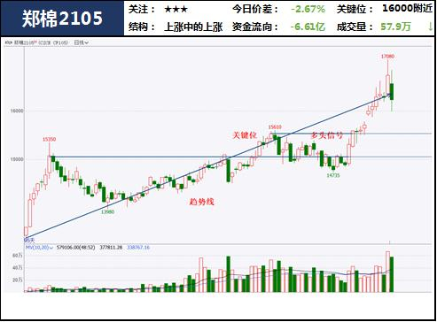 由于外盘下跌,今日内盘走低,但是整体来看美棉需求良好,且中国棉纺织业景气度较好。上涨趋势仍在,关注调整幅度,目前17000关口附近,产业利多情绪基本出尽,向上驱动仅剩宏观通胀情绪,接下来将进入情绪博弈阶段,波动加大,注意持仓风控。