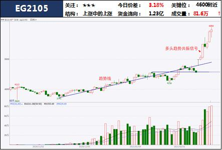 原料端看,近期石油价格节节高升,提振能源化工板块。进口端,2020年第四季度进口大幅萎缩。但现阶段乙二醇开工率不算很高,后续产能仍有提高空间,本周港口乙二醇港口库存也有一定回升。同时美国天气问题导致大量装置停产,盘面仍有支撑。盘中下跌后反弹,尾盘收涨于开盘价上方,延续了近期的强势走势,多单可持有,若盘中再度走高可轻仓多单跟进。