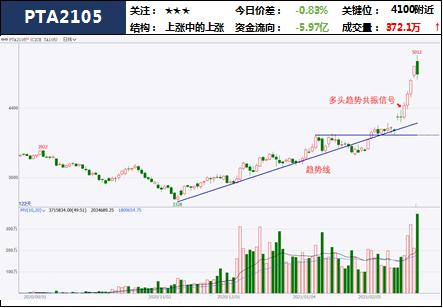 原料端,原油近期价格不断走高,对能化板块起到提振作用。近期上游PX供应偏紧,整体处于去库阶段,PX价格持续上涨,对PTA成本端有一定支撑。同时,需求端短纤生产功率全开,仍然供不应求,需求十分旺盛。盘面上看多头结构仍在,近期减仓回调,回落至5000关口下方,小周期小幅调整后仍有向上量能。周线级别看上方空间可观。