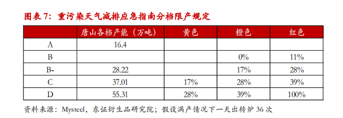 现有唐山环保限产主要依据《唐山市3月份大气污染综合治理攻坚月方案》通知,3月唐山地区实际限产力度达到40%-50%。但考虑3月份有两会扰动,随着唐山环保趋严常态化,整体限产力度预计较3月份略有减弱。钢厂常态化环保限产减排方案主要依据环办大气函〔2020〕340号重污染天气减排应急指南。