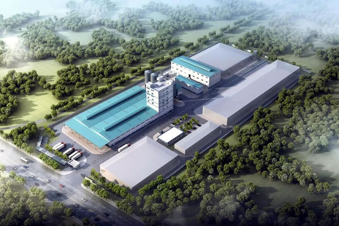 在中试成功和喂养试验取得明显效果的基础上,东亚糖业集团2019年7月成立广西扶南饲料有限公司,2019年底正式开工建设标准反刍生物饲料项目。饲料厂占地面积120亩,包含主车间、发酵间、干燥间、青贮站等生产场所,总建筑面积达32000多平方米,公司设计产能12万吨,其中一期项目建设年产6万吨词料。利用集团电厂和糖厂的蒸汽、电、蔗渣、糖蜜及周边丰富的蔗叶、蔗梢等副产物,打造糖业循环经济发展新平台。当前,饲料项目土建和设备安装已进入最后冲刺阶段,计划2021年8月份试机投产。