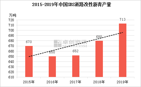 另外,从卓创资讯测算的SBS道路改性沥青的产量来看,其逐年增长态势尤为明显,改性沥青在道路方面的应用前景广阔,同样具备优异路用价值的胶粉改性沥青也拥有巨大的应用潜力。
