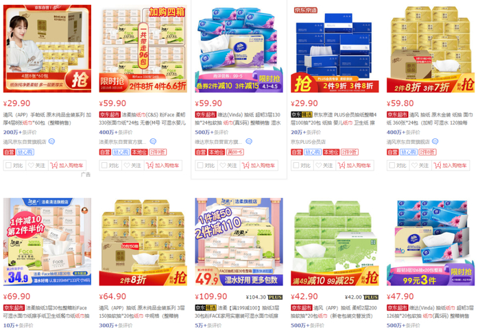 从电商平台的销售价格来看,目前生活用纸多品类产品的价格都没有多大变化,依然有很多纸巾类产品在做促销让利活动。业内人士认为,未来销售方可能会采用减少折扣力度等隐性涨价方式,让消费者感觉不明显。此外,零售价格最终涨多少,除了要看木浆的价格走势,还取决于生产企业与电商、经销商、大型超市之间的博弈和市场供求关系。目前市场供应充足,消费者没必要提前囤纸。