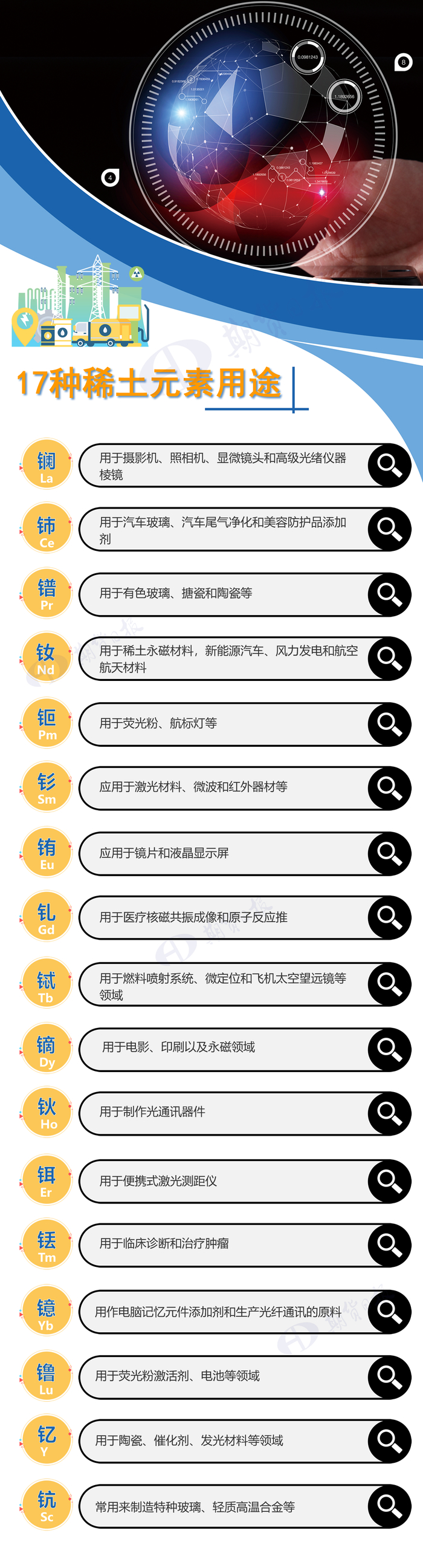 此外,稀土的应用范围非常的广泛,也是当前新技术和新领域中使用最多的元素,更是发现超高技术的首要元素之一。