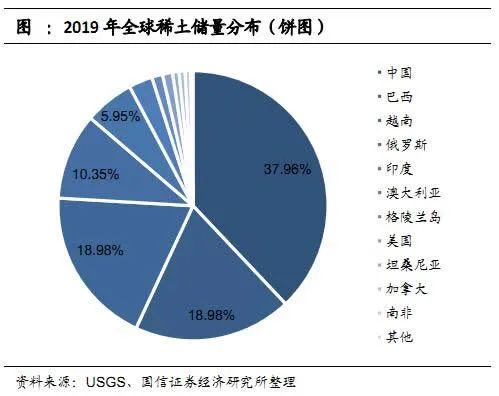 中国是全球稀土的第一大储量大国,储量占全球37%,冶炼分离产品产量占全球88%以上。
