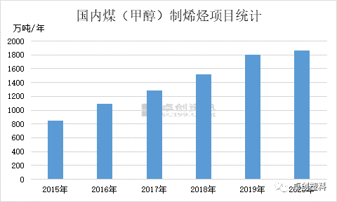 而基于我国内“富煤、贫油、少气”的能源结构特点煤制烯烃近几年亦是发展迅速,截至2020年据卓创资讯数据统计煤制烯烃(含甲醇制烯烃)的产能达到1861.5万吨。