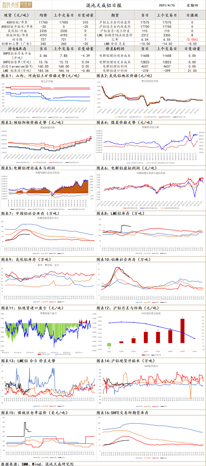 昨日铝价延续强势,内蒙的能耗双控的风刚过,产铝大省新疆开始起风了。当然这些消息都是臆测尚无确切证实,但我相信资金是实在聪明的,所谓无风不起浪。冷静下来思考一下,从实际影响考虑,电解铝当前利润较高,且电解铝启停成本较高,快速影响到电解铝实际生产的可能性较小,在大宗调控背景下,风险还是要警惕的,不建议追多操作,昨天盘中也出现了瞬间400左右的急跌,策略上仍然维持逢低多的思路,密切关注新疆政策的最新进展。