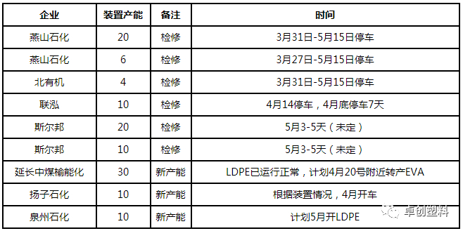 二季度来看,EVA国内供给面可谓是多空交织,一方面新产能来袭,另一方面,企业检修依旧频繁。