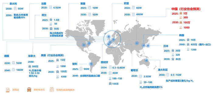 (数据来源:世界各主要国家氢能发展战略规划、中国氢能联盟)