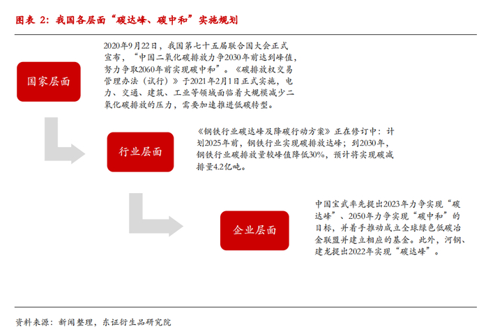 去年,我国在联合国大会宣布 “3060”碳排放目标。中国钢铁碳排放量占全球钢铁碳排放总量60%以上,钢铁行业碳排放量约占全国总排放量15%。“碳达峰”目标下,钢铁将成为重要的试点行业。