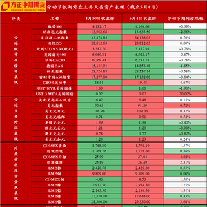 劳动节假期外盘主要大类资产涨跌幅统计