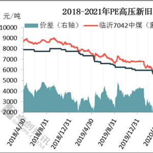 新旧料价差缩窄对再生PE市场产生重大利空。从2018年至2020年5月底,新旧料价差基本处于偏窄区间,最大不超过1000元/吨。受新料的压制,再生厂家出货遇阻,再生PE价格则承压下探。进入2021年,新旧料价差扩大,并一度超过2000元/吨,利好再生市场,再生料价格出现明显回升。