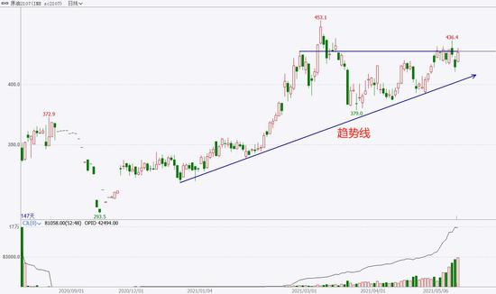 ■ 后市分析:通胀预期下,原油向上驱动较强,今日拉升冲击前高,关注后市能否创出新高,影响能化板块联动走强。上涨中的上涨