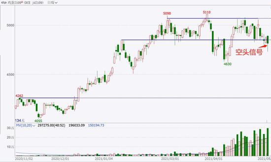 ■ 后市分析:现货端利空因素较多,周末现货鸡蛋小幅下跌,,今日开盘盘面延续承压状态,该品种波动较大,注意进场时机与节奏,目前仍是空头思路下方暂看前低4630附近,关注盘中能否再次走弱触发空头信号,充分打开空间。震荡中的下跌