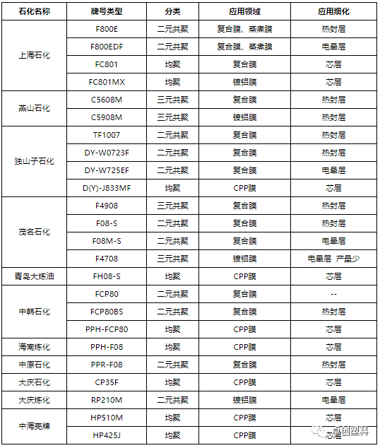 表2 进口CPP专用料供应企业及应用梳理
