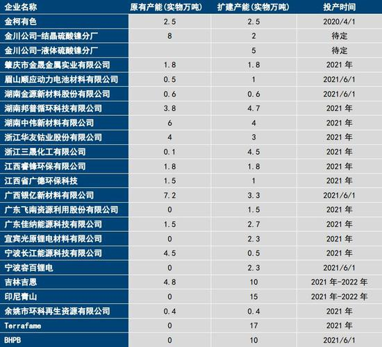 图:2021年新增硫酸镍产能项目