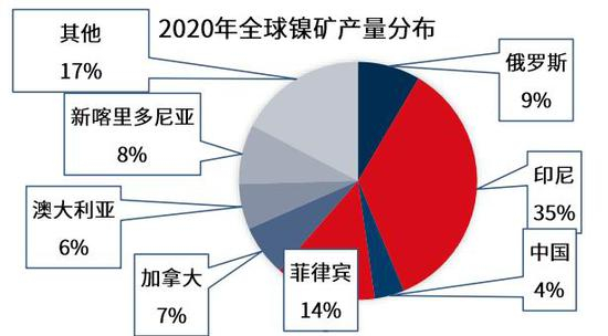 图:2020年全球镍矿产量分布