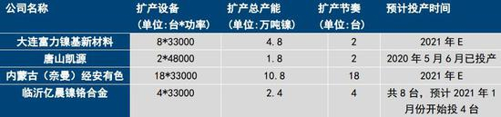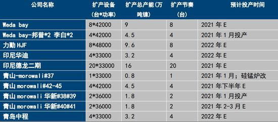 图:2020-2021印尼新增镍铁产能及进度