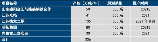 图:2021新增不锈钢产能列表