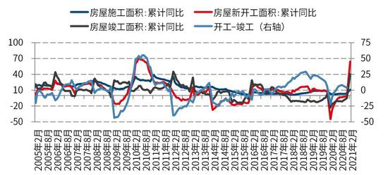图:房地产竣工、开工数据