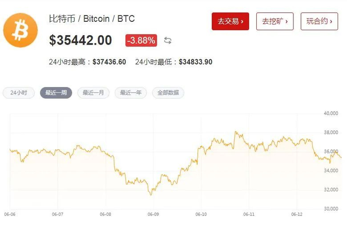 不知道是不是受此消息影响,比特币跌幅收窄,截至记者发稿,一枚比特币的价格由此前跌破32000美元回升至35000美元之上。