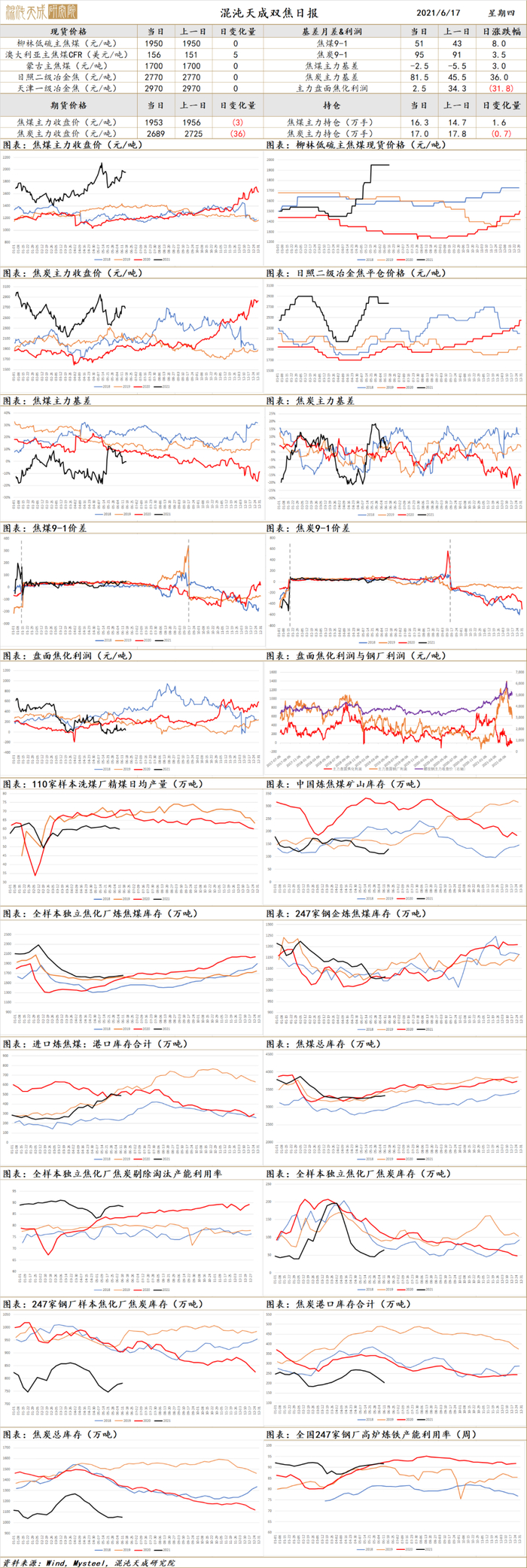 供应方面,上周MS调研国内平均吨焦盈利为825元,周环比增5元。独立焦化厂产能利用率周环比减0.51%至88.31%,钢厂焦化厂产能利用率89.15%,周环比降0.67%,总体日均产量下降,近日山东省对2021焦化产量压减至3200万吨内,预计焦炭日产将继续走低。MS调研数据显示上周焦化厂焦炭库存周环比增加6.97万吨至64.36万吨;需求方面,焦炭下游限产企稳,受高利润驱动下,非限产地区生产积极性强,近期高炉开工率小幅回落,上周高炉产量反推日均焦炭需求为147.20万吨,而焦炭实际日均产量为147.09万吨。长期需求量偏弱,且随着新产能陆续投放,预计下半年焦炭供需偏紧局面将缓解,焦炭将震荡偏弱运行。