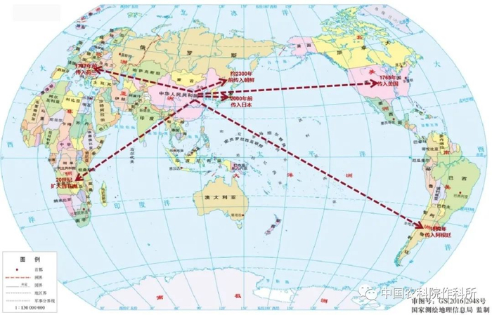 图2 大豆在世界上的传播时序