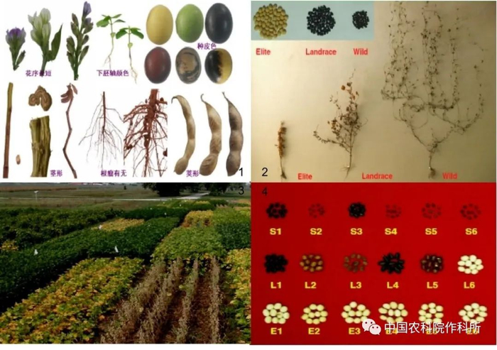 3.大豆品种资源生育期差异 4.大豆籽粒形态分类