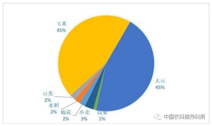 近年全球大豆种子市场规模在760万吨左右,总产值约50亿美元,其中,美国国内大豆种子市场规模在190万吨左右,产值稳定在20亿美元以上,是全球主要的大豆种子产品需求国家之一,大豆种子在该国种业中占据十分重要地位。巴西的大豆种子产业已有超过30年的历史,其国内市场规模已经超过美国,产值仅次于美国。大田作物中,巴西大豆种子市场占约45%,即巴西大豆种子市场规模约15亿美元,种子销量约200万吨,商品化率98%以上。大豆种子销量已经占农作物种子销量的45%(图4)。阿根廷大豆种业发展相较巴西更晚一些,开始于本世纪初,目前大豆种子市场规模约110万吨,产值约8亿美元。