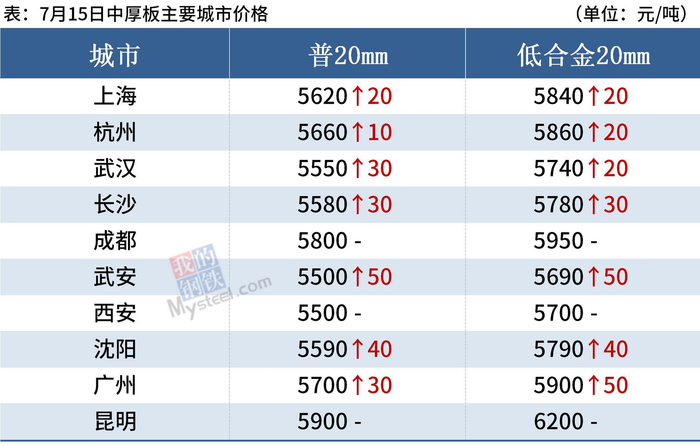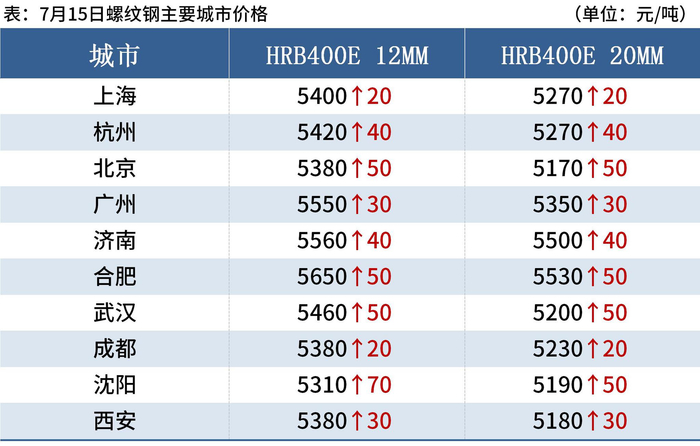 7月15日,国内钢材市场普遍上涨,唐山普方坯出厂价涨20报5140元/吨。受央行降准以及多地传出压减粗钢产量消息,本周市场看涨情绪浓厚,钢材成交量明显回升,钢厂库存进一步下降,厂商积极拉涨。不过,下游终端成本压力加大,仍按需采购,更多是投机性需求表现活跃。