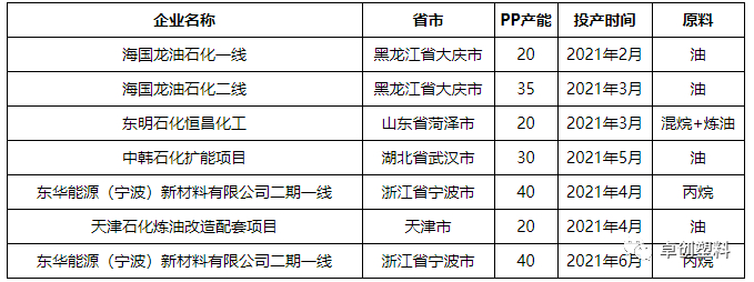 表1 2021年上半年国内聚丙烯投产装置汇总