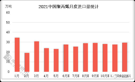 下半年来看,综合考虑扩能背景及我国聚丙烯主要进口国销售策略及其国内政策影响,2021年聚丙烯进口数量或难以到达去年同期水平,初级形状聚丙烯单月进口数量或处在24-29万吨区间内。