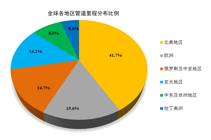 全球各地区管道里程分布比例图
