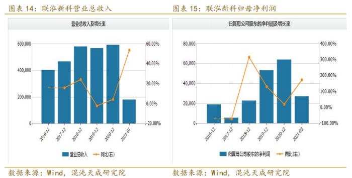 联泓新科:公司是一家从事先进高分子材料及特种化学品的研发、生产与销售的高新技术企业。公司产品主要包括EVA光伏料和电缆料,PP薄壁注塑专用料,特种表面活性剂、高性能减水剂等。目前公司旗下的EVA产能为10万吨/年,占国内EVA总产能的10.24%。同时也是国内能生产光伏级EVA粒料的三家企业之一。2020年公司EVA实现收入13.41亿元,占总收入约为22.61%。