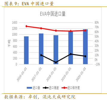 由于目前国内的工艺还未能达到自主生产的水平,所以EVA装置以及相关技术人员都需要从海外引进。同时出口海外的光伏组件需要进行严格认证程序,过程复杂且门槛高,所以一般在组件厂取得质量认证后不会轻易更换原材料提供商。