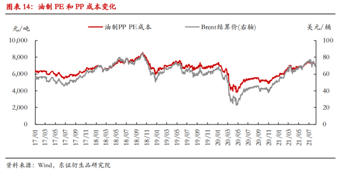 中性估计下,预计2021年PE被替代的量占其总需求的1.0%,而同期PE需求增长率为6.2%,所以可降解塑料已在2021年开始对PE产生替代。而对于PP,到2023年可降解塑料开始对PP造成实质性的替代,替代量占其总需求量的0.8%。总体而言,可降解塑料对PE的利空在量上大于PP,在时间上也早于PP。