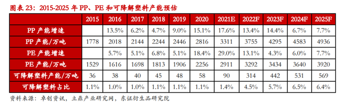 5.5、可降解塑料已开始对PE产生替代,2023年对PP造成实质性替代