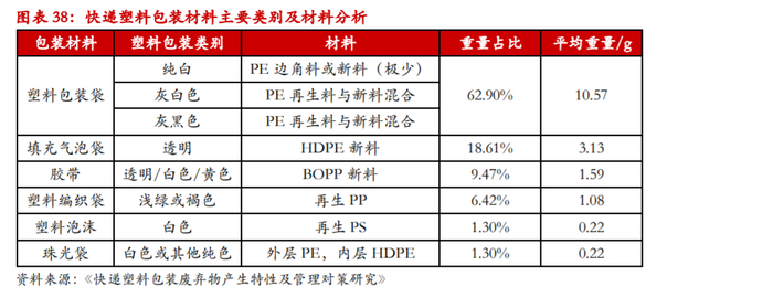 5.3、快递包装材料以回料为主,PE和PP损失量较小