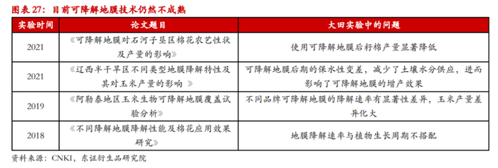所以,可降解地膜在技术上还需对不同地区的土壤环境、气候环境和不同农作物之间展开匹配,预计2年内仍无法大规模展开使用。