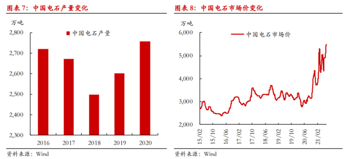 同时,在新增BDO的产能中,电石法制乙炔的工艺占比高达73%,若其全部投产将新增约400万吨的电石需求。当下电石行业在“碳达峰”、“碳中和”的大背景下受政策管控愈发严格,不仅原则上无法新增产能,还经常性的需面对的限产限电等“能耗双控”政策影响。可以预见的是,供应偏紧的国内电石市场将影响到BDO的新产能投放,BDO的成本也将在边际上逐渐抬升。