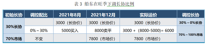 模拟案例4:班轮公司B采用“30%长协+70%市场”相结合的方式,以$3000/TEU的均价签订了亚欧航线长协合同。由于运价大幅上涨,班轮公司B的长协价已远低于市场价,随即采用集装箱运价期货降低长协比例,提升市场比例,实现更高的运费收益。